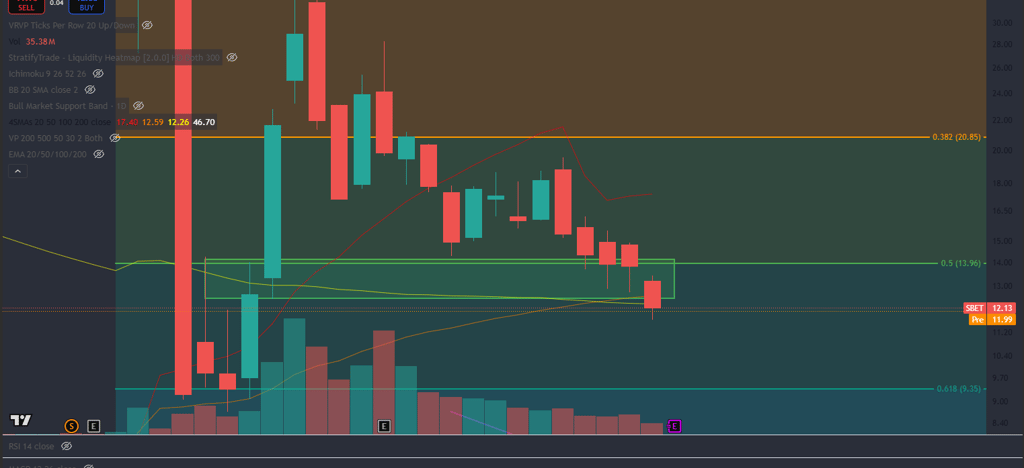 Il titolo Sharplink è interessante perché in fase laterale di accumulo dopo dei violenti movimenti in entrambe le direzioni. Il rapporto rischio rendimento appare estremamente favorevole, con un potenziale ribasso verso i 9 dollari che sembra poco probabile, e con invece una base stabile identificabile intorno ai 14.5 dollari. Il potenziale rialzo invece potrebbe andare a testare ognuno dei precedenti massimi, ovvero area 24-28-40-50 dollari.